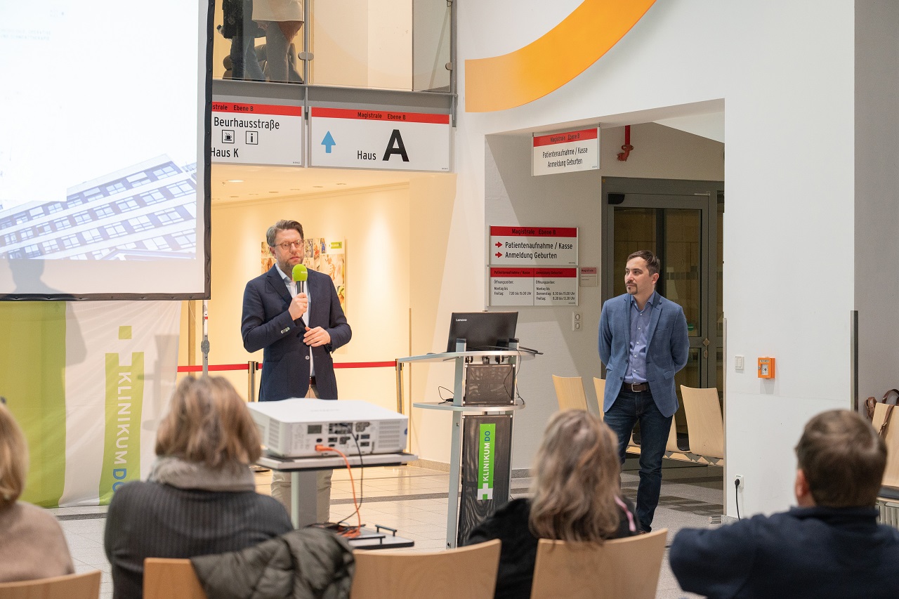 Priv.-Doz. Dr. Farhad Farzaliyev und Prof. Dr. Tobias Hirsch gaben in der Magistrale des Klinikums einen Überblick über die moderne plastische Chirurgie. Beide leiten an der Unfallklinik am Klinikum Nord die Sektion für Plastische-, Rekonstruktive- und Handchirurgie, die seit dem Sommer vergangenen Jahres besteht. Prof. Dr. Hirsch ist zusätzlich Direktor der Klinik für Plastische Chirurgie am Universitätsklinikum Münster und Chefarzt an der Fachklinik Hornheide, die eng mit dem Klinikum Dortmund kooperieren.