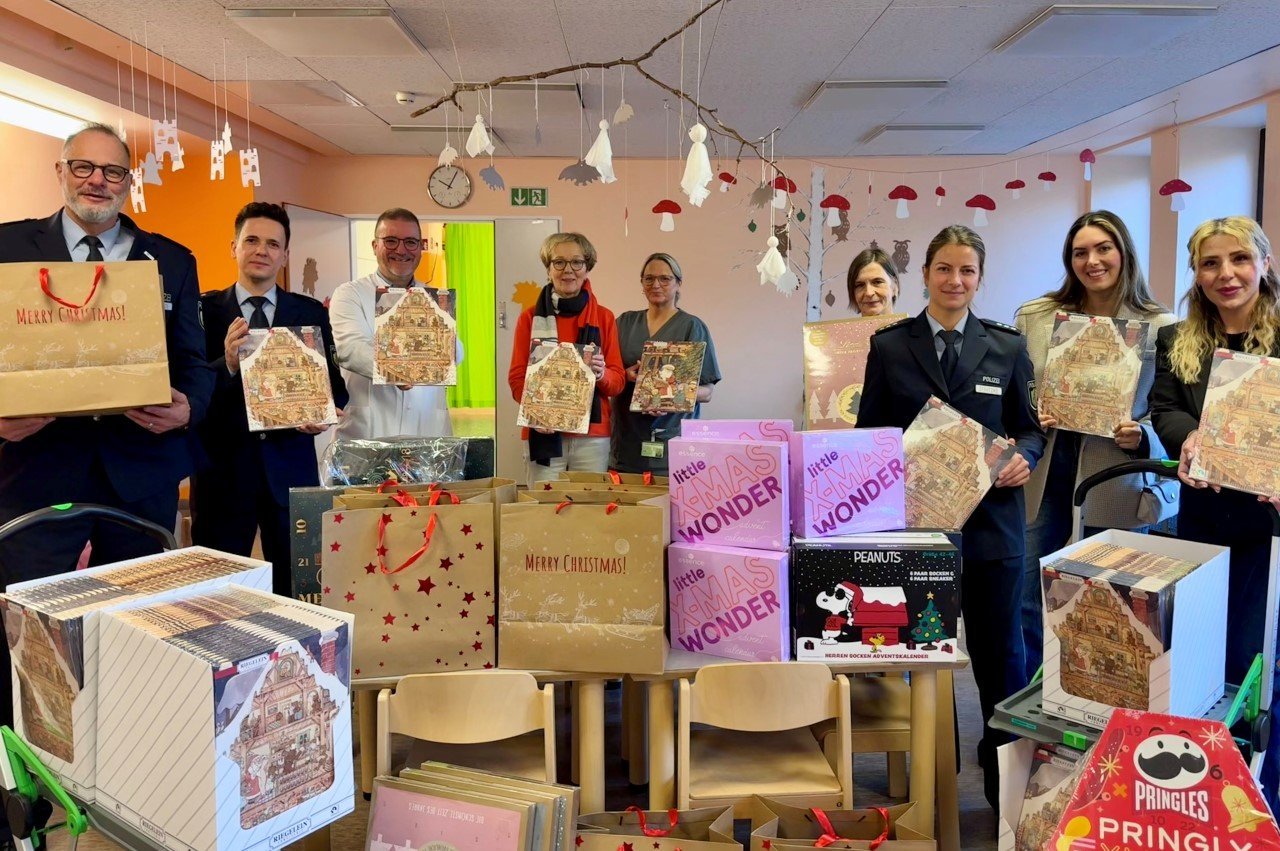 Polizei Dortmund verteilt Adventskalender in der Kinderklinik