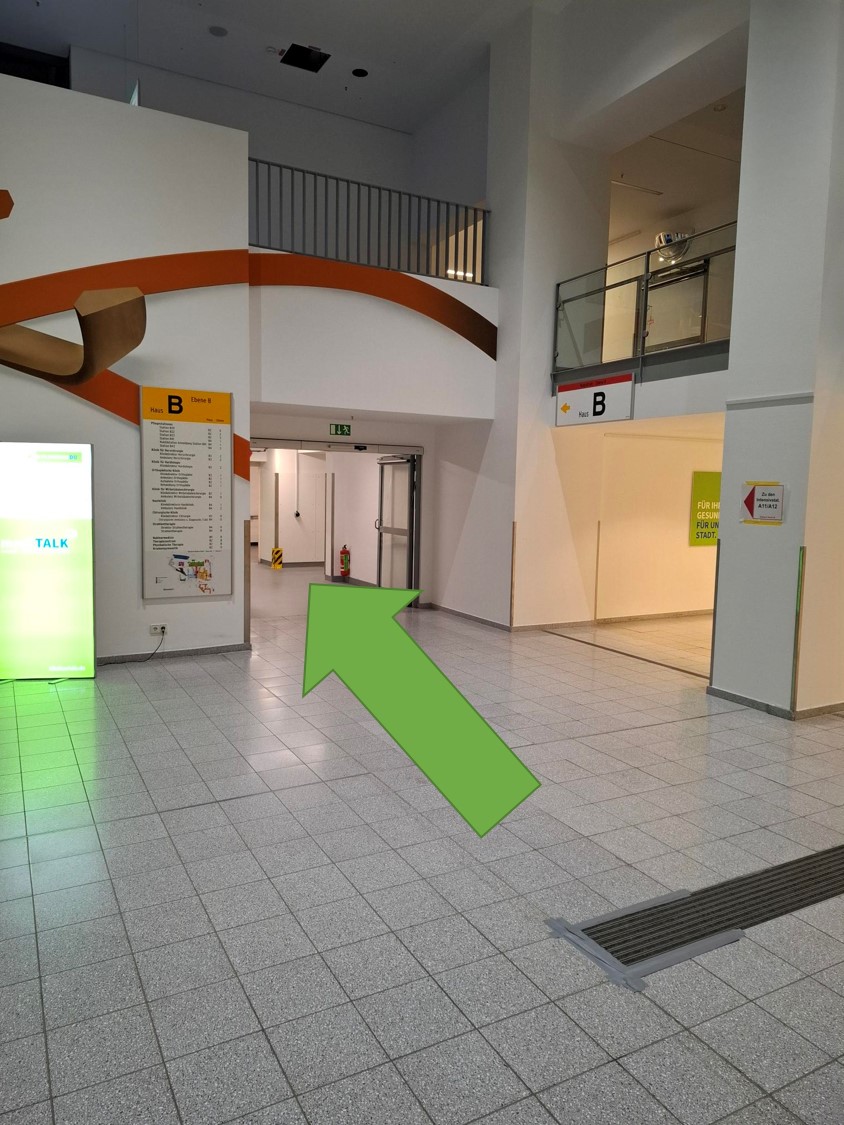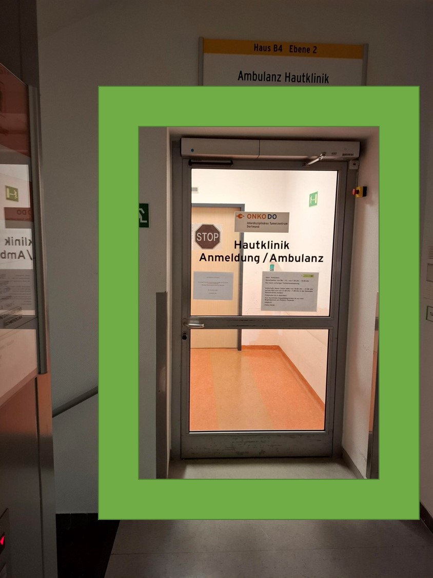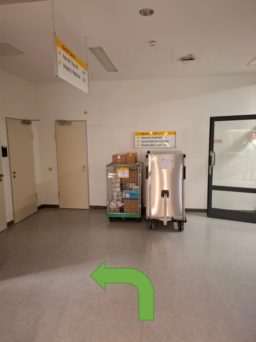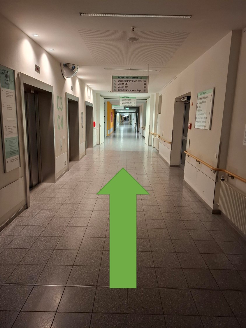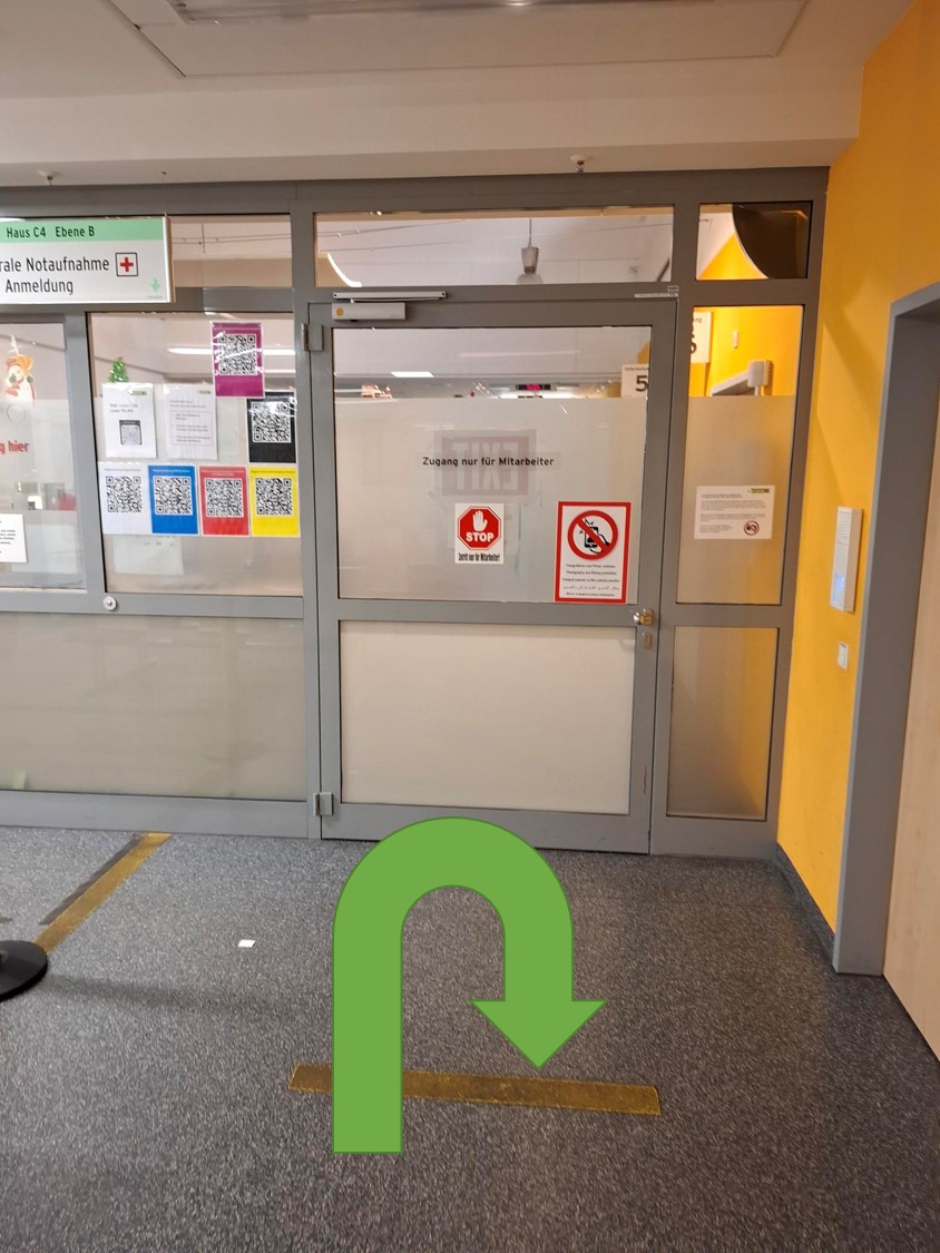 Patientenleitsystem von der Zentralen Notaufnahme (ZNA) zur Dermatologie (Hautklinik):