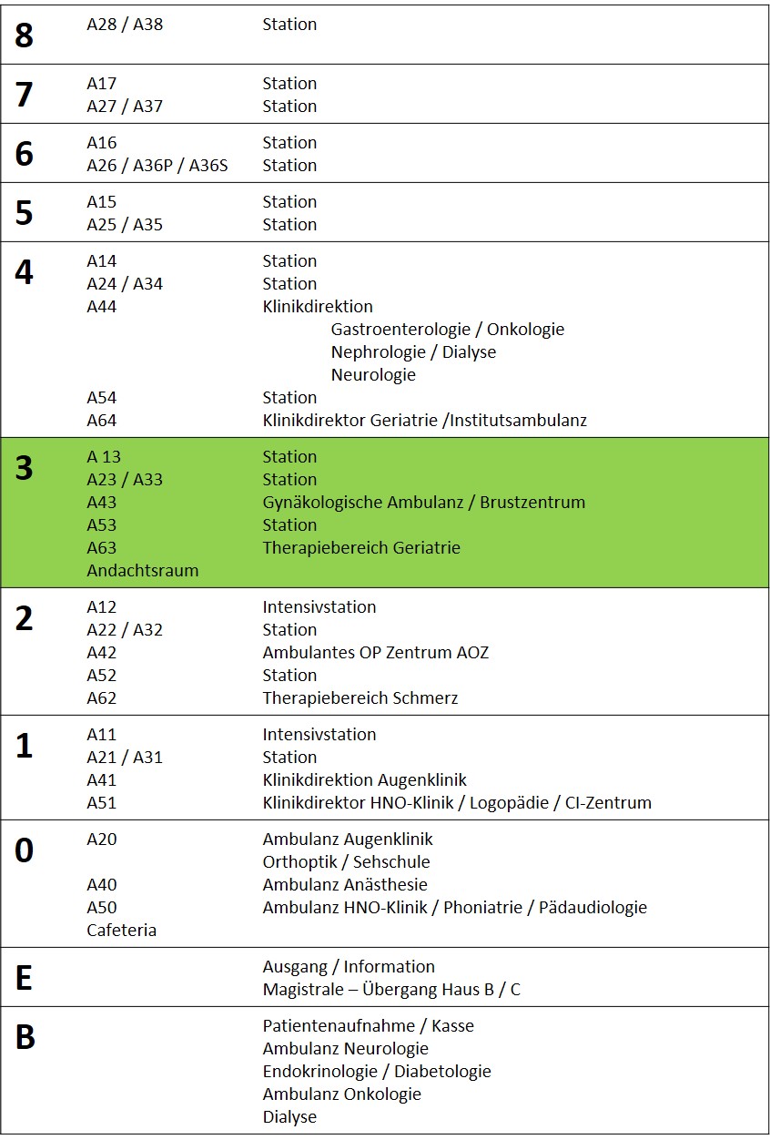 Patientenleitsystem von der Zentralen Notaufnahme (ZNA) zur gynäkologischen Ambulanz (Brustzentrum):